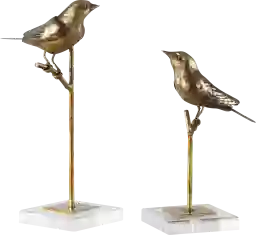 These sculptures are crafted with attention to detail and high-quality materials, featuring bird figurines finished in antiqued gold leaf. Each piece is mounted on a solid crystal base, providing a weighted, high-end feel and a clear, reflective quality that enhances the play of light in your room.