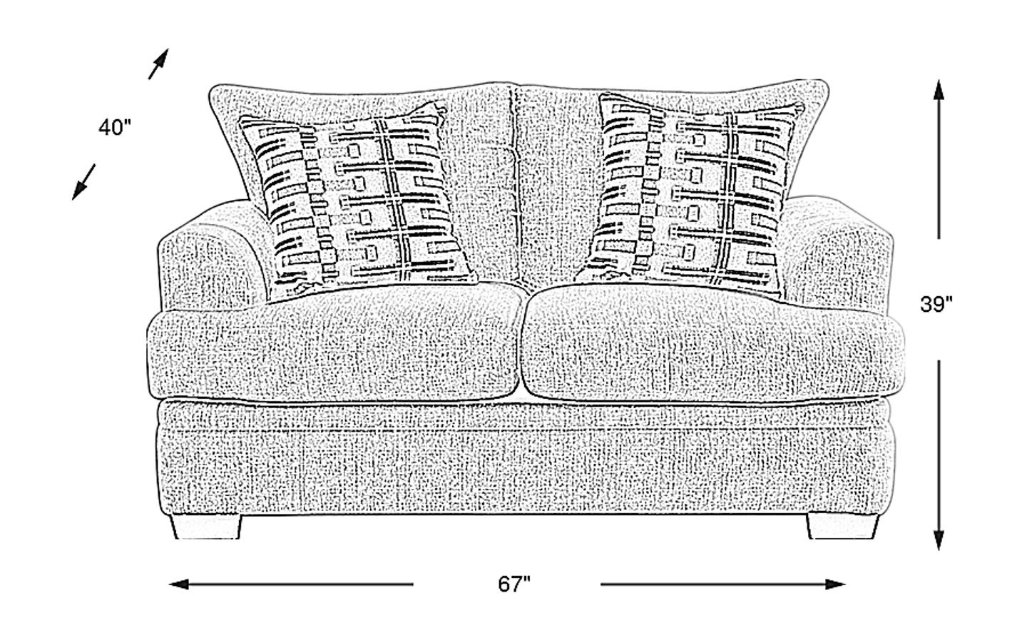 Measuring 67 inches in width, this loveseat is an excellent choice for urban apartments or smaller living areas. Its compact scale provides comfortable seating for two without overwhelming limited floor space. To ensure a smooth delivery, our experts recommend measuring your doorways and hallways to verify they can accommodate the piece's 40-inch depth and 39-inch height.