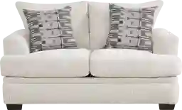 Poetic simplicity woven with grace and charm into the coziest corners of daily life, the Cooper living room's dapper lines and understated curves transform the ordinary into the sublime. This contemporary collection is upholstered in soft white chenille, with gently sloping wedge arms hugging pillow-style back cushions. T-cushion seats extend past the arms for extra leg room. Each base is accented with decorative wrap-around stitching to subtly highlight the seat design. Upholstery: 100% Polyester. Cleaning Instructions: Use water-based cleaning agents or foam. Tables and lamps not as shown in room image.