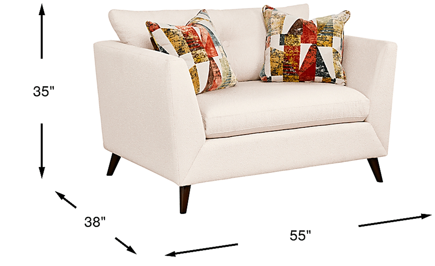 Mixing playful details with sumptuous craftsmanship, what's not to love about the Copenhagen chair from Drew & Jonathan? This handsome collection's mid-century modern style has a timeless look and feel with soft chenille upholstery in a soothing ivory color. The chair has a loose seat cushion outlined by subtle welting alongside a back cushion with beautiful tufting and matching bolster pillows. Coordinating accent pillows add even more visual intrigue with an eye-popping pattern. This piece's casual elegance wouldn't be complete without the tapered legs that perfectly complement the mid-century aesthetic. Upholstery: 100% Polyester.