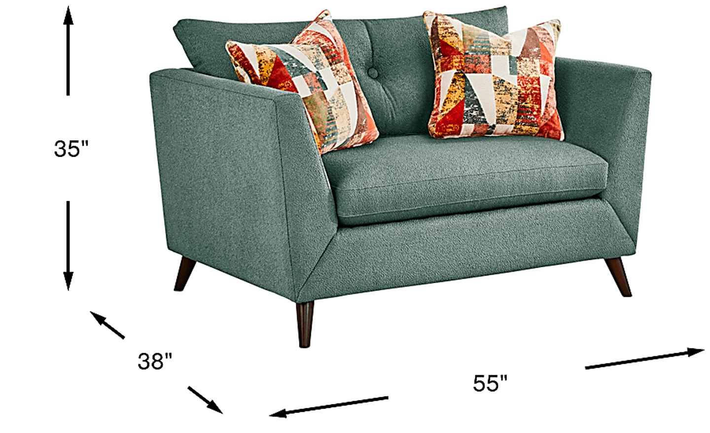 Mixing playful details with sumptuous craftsmanship, what's not to love about the Copenhagen chair from Drew & Jonathan? This handsome collection's mid-century modern style has a timeless look and feel with soft chenille upholstery in a soothing lagoon color. The chair has a loose seat cushion outlined by subtle welting alongside a back cushion with beautiful tufting and matching bolster pillows. Coordinating accent pillows add even more visual intrigue with an eye-popping pattern. This piece's casual elegance wouldn't be complete without the tapered legs that perfectly complement the mid-century aesthetic. Upholstery: 100% Polyester.