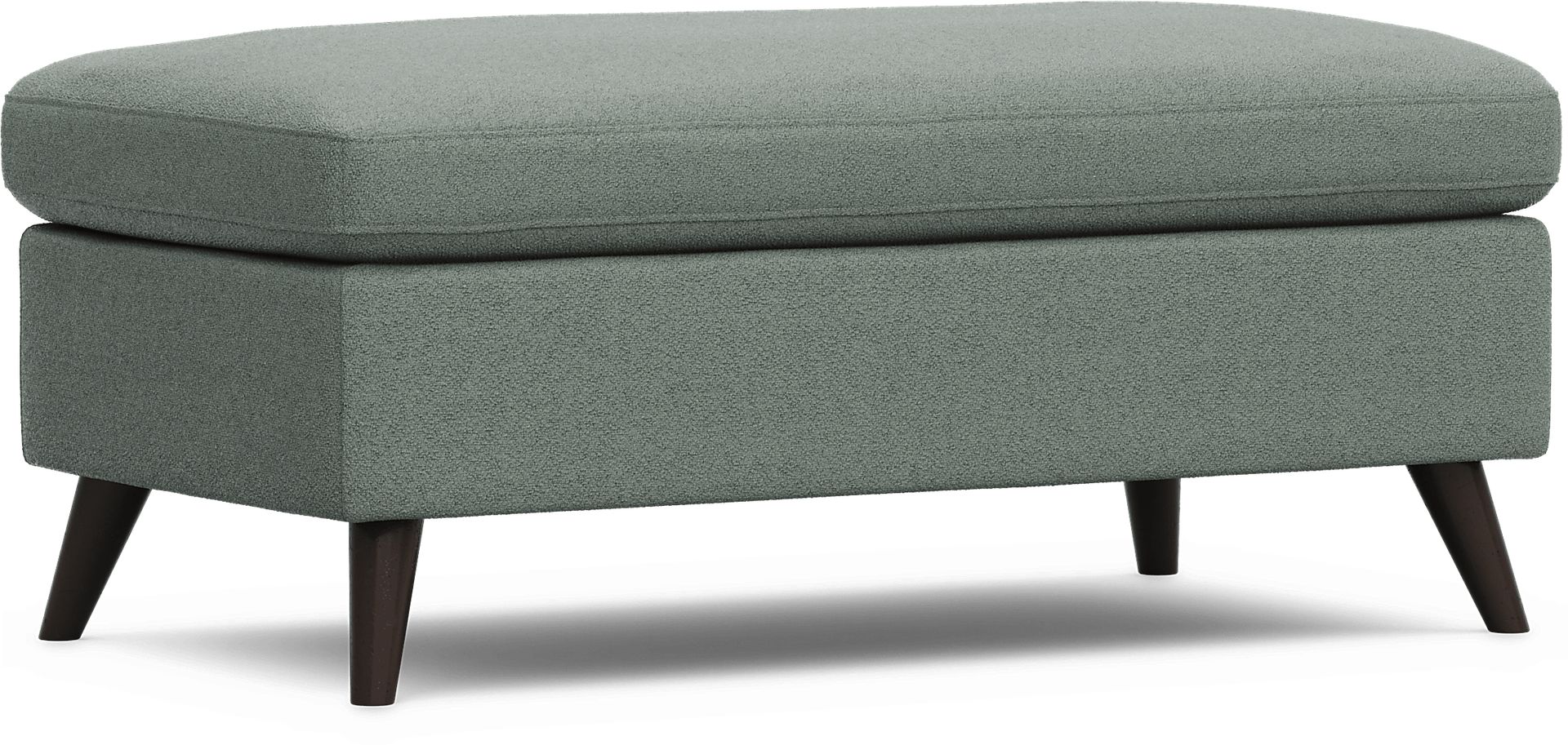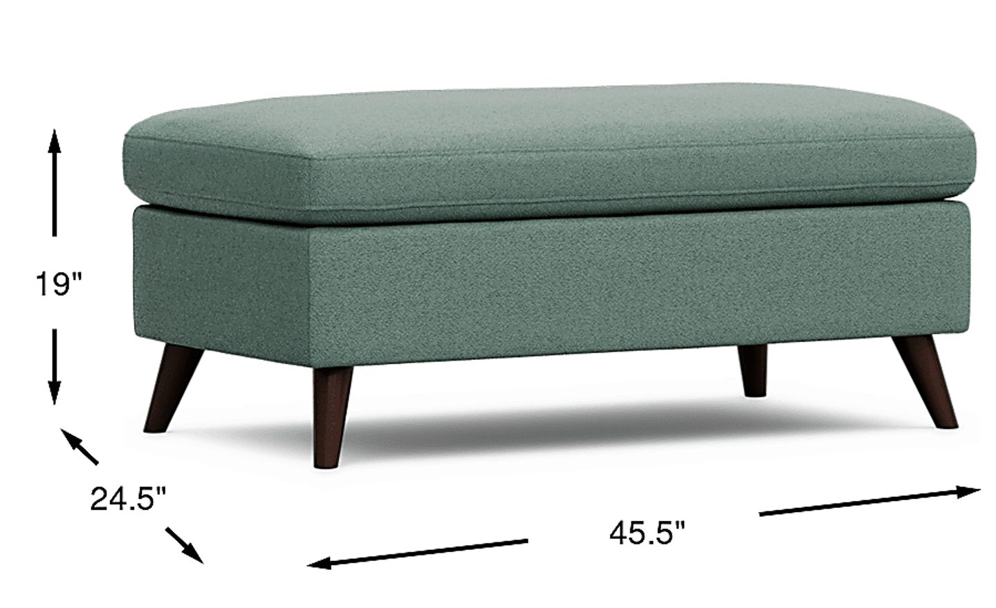 Mixing playful details with sumptuous craftsmanship, what's not to love about the Copenhagen collection from Drew & Jonathan? Soft chenille upholstery in a soothing lagoon color adorns the frame of this foot ottoman. Offering casual elegance from every angle, this piece wouldn't be complete without the tapered legs that perfectly complement the modern mid-century aesthetic. Upholstery: 100% Polyester.