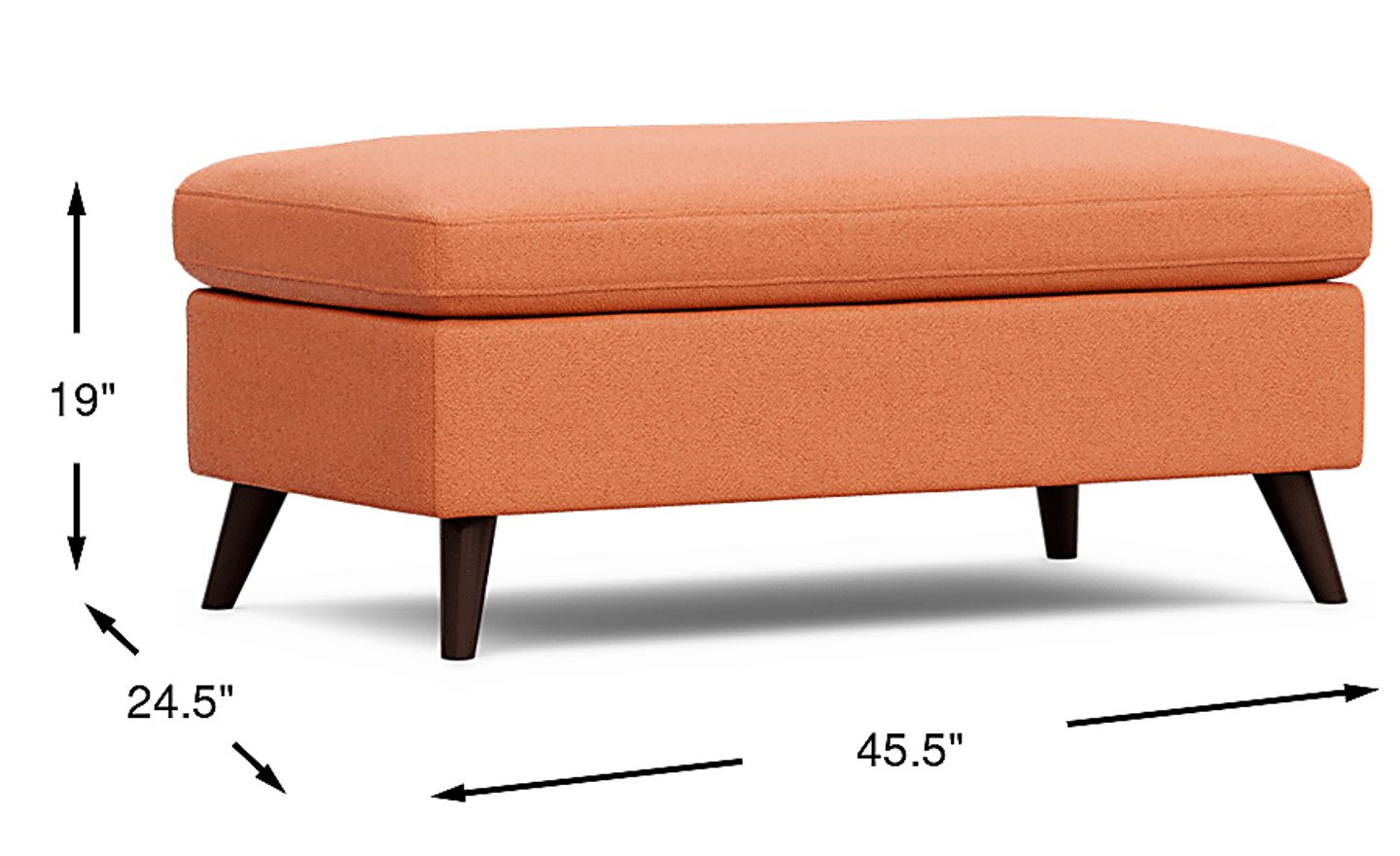 This ottoman is a quintessential example of contemporary mid-century modern design. Its clean lines and signature tapered legs in a brown finish offer a sophisticated aesthetic. The warm terracotta color acts as a bold yet earthy accent that pairs exceptionally well with neutral tones, helping to anchor a room with both color and texture.