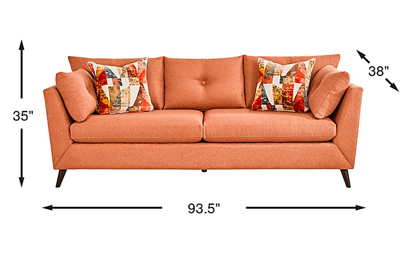 Mixing playful details with sumptuous craftsmanship, what's not to love about the Copenhagen sofa from Drew & Jonathan? This handsome collection's mid-century modern style has a timeless look and feel with soft chenille upholstery in a soothing terracotta color. The sofa has loose cushions outlined by subtle welting alongside back cushions with beautiful tufting and matching bolster pillows. Coordinating accent pillows add even more visual intrigue with an eye-popping pattern. This piece's casual elegance wouldn't be complete without the tapered legs that perfectly complement the mid-century aesthetic. Upholstery: 100% Polyester.