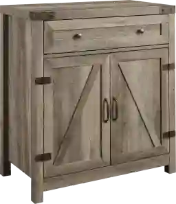 Bring the countryside to your home with this 30 inch farmhouse barn door Copenhill accent cabinet. Picture your entryway transforming into a darling cottage entrance or a rustic ranch. Complement the accent cabinet with a mirror, a painting, or some greenery on top of it. Go for a wild country scene, a calm chateau glow, or a fancy farmhouse soiree. Use the cabinet's drawer for easy access storage such as car keys, notebooks, or phone charges. And with adjustable shelves, this cabinet can be arranged to fit all your storage needs. Place it wherever you want a sprinkle of pastoral pleasantry, whether it's in your living room, bedroom, home office, or entryway. Customer assembly is required.