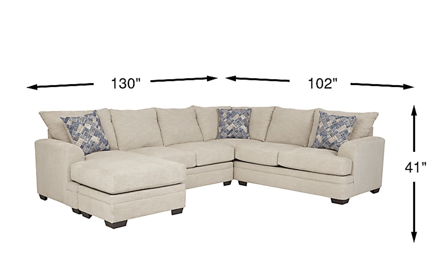 130.00"w x 102.00"d x 41.00"h