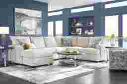 A sleekly designed seat, the Copley Court sectional creates a contemporary and cozy place to relax. Upholstered with plush chenille fabric in a crisp shade of parchment beige, this sectional features tight slip over arms, reversible seat cushions and sumptuous seating perfect for lounging. Included accent pillows offer a colorful splash of blue, gray and beige. 91% Polyester, 9% Polyurethane