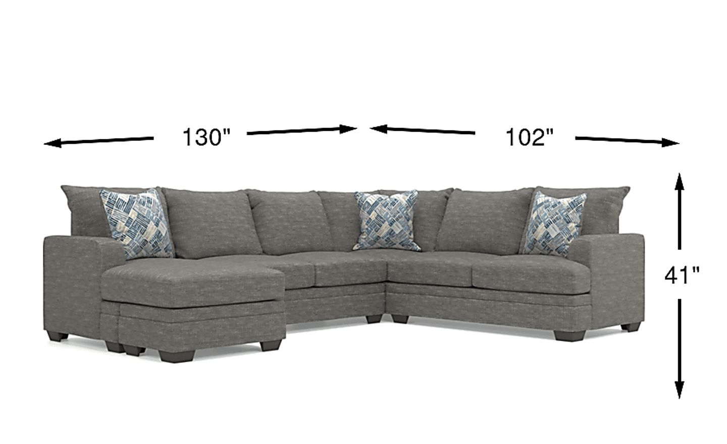 While the fully assembled dimensions are 130"w x 102"d x 41"h, the furniture is constructed as a two-piece set to facilitate easier delivery. Our delivery expertise suggests that the modular nature of these pieces allows them to be tilted and pivoted more effectively through standard entryways and hallways. We recommend measuring your space and any tight corners to ensure the components can navigate your home's specific architectural layout.