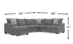 A sleekly designed seat, the Copley Court sectional creates a contemporary and cozy place to relax. Upholstered with plush chenille fabric in a chic shade of pewter gray, this sectional features tight slip over arms, reversible seat cushions and sumptuous seating perfect for lounging. Included accent pillows offer a colorful splash of blue, gray and beige. 91% Polyester, 9% Polyurethane