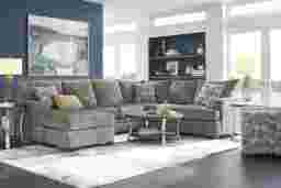 A sleekly designed seat, the Copley Court sectional creates a contemporary and cozy place to relax. Upholstered with plush chenille fabric in a chic shade of pewter gray, this sectional features tight slip over arms, reversible seat cushions and sumptuous seating perfect for lounging. Included accent pillows offer a colorful splash of blue, gray and beige. 91% Polyester, 9% Polyurethane