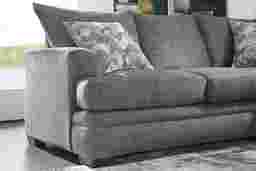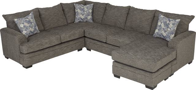 Sleekly designed, the Copley Court sectional creates a cozy, contemporary place to relax. Upholstered with plush chenille fabric in a chic shade of pewter gray, this sectional features tight slip over arms, reversible seat cushions and sumptuous seating perfect for lounging. Included accent pillows offer a colorful splash of blue, gray and beige. Tucked inside is a Sealy Royale queen size mattress to accommodate overnight guests. Upholstery: 91% Polyester, 9% Polyurethane.
