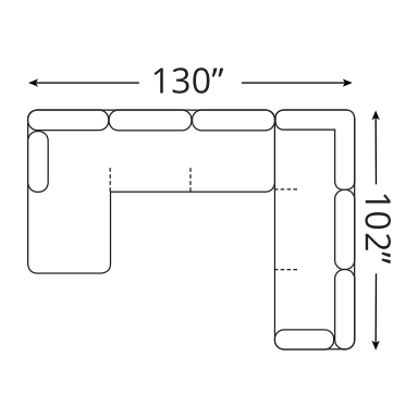 130.00"w x 102.00"d x 39.00"h