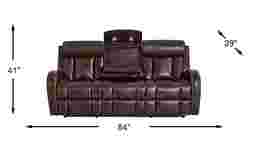 The Copperfield sofa blends both contemporary and traditional design elements, making it highly versatile for various home decors. Its classic brown color, plush pillow-top arms, and pillow backs offer a timeless appeal, while the dual power reclining feature adds modern functionality. This allows the sofa to seamlessly integrate into both richly decorated traditional settings and more streamlined, contemporary living rooms, particularly complementing earth tones common in many Florida and Texas homes.
