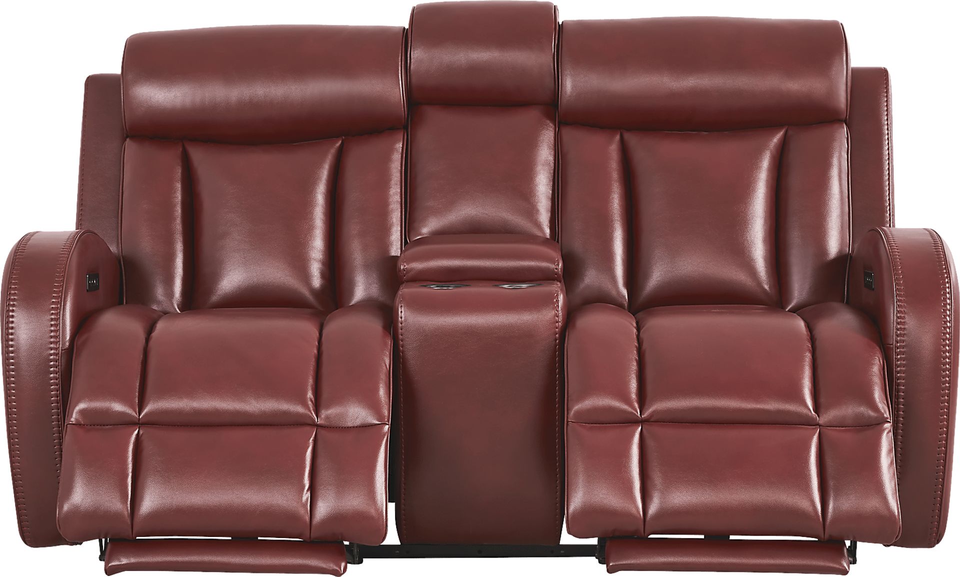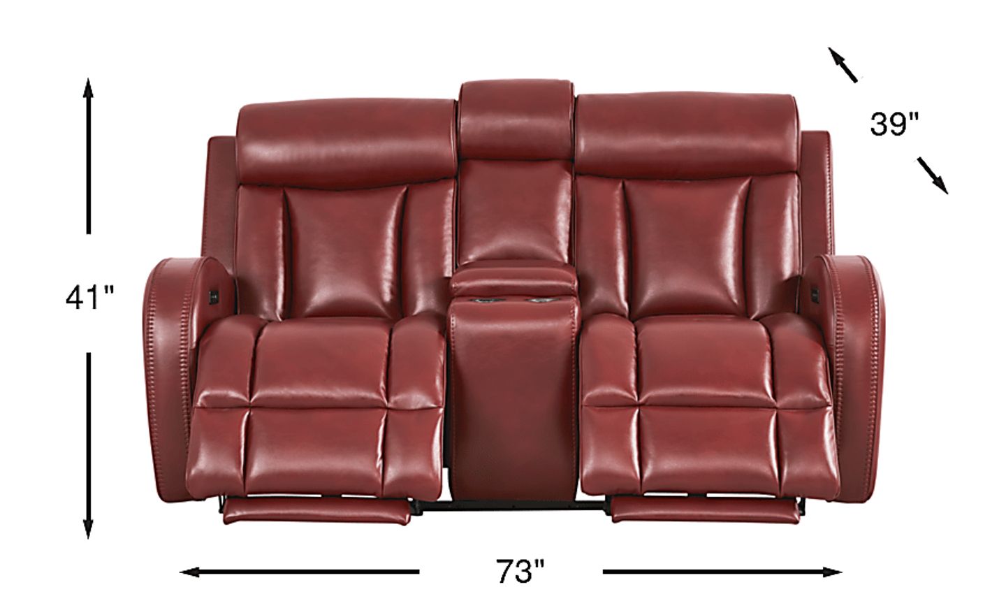 Yes, this loveseat is specifically outfitted for a premium home cinema experience. The integrated center console features stainless steel cupholders and a storage compartment, providing a convenient place for drinks and keeping remote controls organized. Combined with the power reclining function, it offers the luxury of theater-style seating within the comfort of your own home.