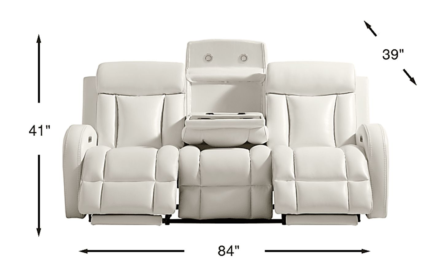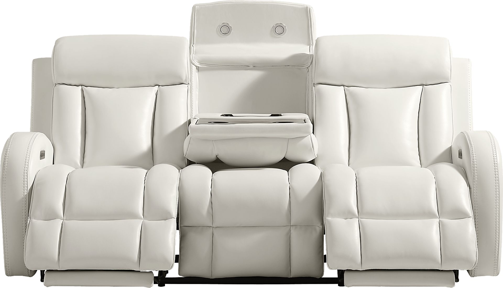 This sofa is designed to serve as a modern entertainment hub. The middle seat back folds down to reveal a functional console equipped with integrated LED lighting for visibility, built-in cupholders for convenience, and a wireless charging pad. These features, combined with the dual power reclining motors that allow for independent adjustment of the headrest and footrests, provide a high-tech, clutter-free environment for relaxation.