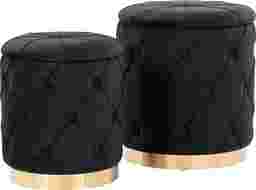 Bring a note of glamour to your home with the chic design of the Coppinger ottoman set. This set is upholstered in soft velvet with a button-tufted design, cushioned top, and a chic gold metal base. The smaller ottoman nests inside the larger ottoman for a space-saving design.