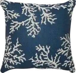 The vibrant coral motif and navy background make this a perfect anchor piece for a coastal or tropical decor theme. Based on common styling principles for outdoor spaces, this 18x18 square pillow works best as a primary layer on a patio sofa or armchair. For a cohesive look, pair it with neutral beige cushions or solid-colored rugs to let the intricate coral pattern stand out as a focal point.