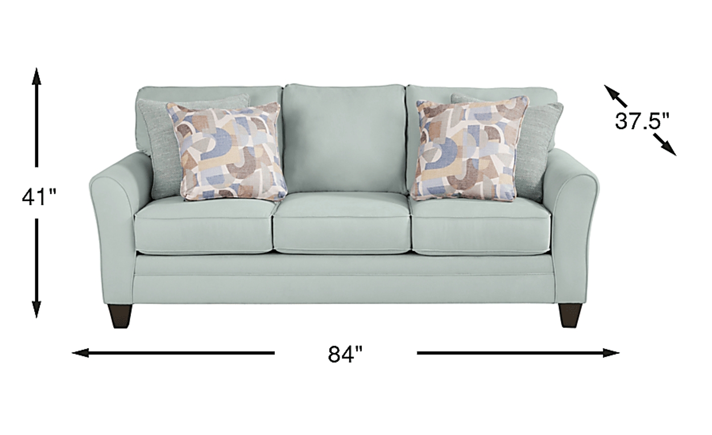 The soothing hues of the ocean meet the warmth of the sandy shore in the Coralville sofa, a relaxing collection of soft curves, tranquil lines, and comfy cushions. This casual piece features brushed twill fabric in an arctic blue hue with subtle roll arms and welted seams throughout. Blue mosaic accent pillows add a gentle touch of style while tapered square legs in a warm brown finish perfectly round off the ensemble. Upholstery: 100% Polyester.
