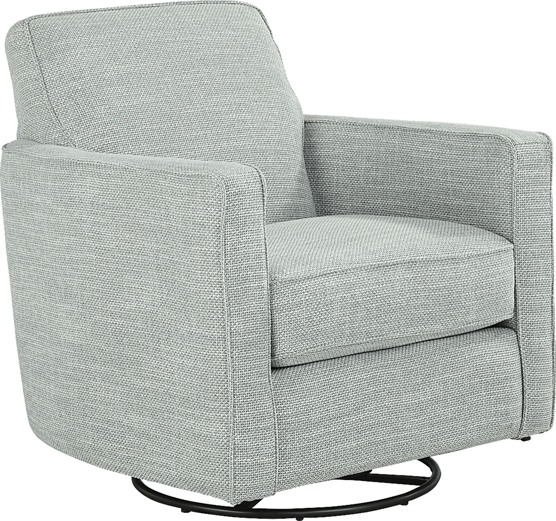 The soothing hues of the ocean meet the warmth of the sandy shore in the Coralville rocker swivel chair, a relaxing collection of soft curves, tranquil lines, and comfy cushions. This casual piece features brushed twill fabric in a blue hue with subtle track arms and welted seams throughout. Its swivel motion makes this chair great for gatherings and everyday enjoyment. Upholstery: 100% Polyester.