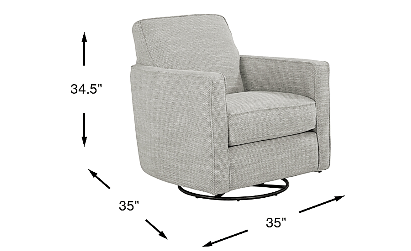 The soothing hues of the ocean meet the warmth of the sandy shore in the Coralville swivel chair, a relaxing collection of soft curves, tranquil lines, and comfy cushions. This casual piece features brushed twill fabric in a gray hue with subtle track arms and welted seams throughout. Its swivel motion makes this chair great for gatherings and everyday enjoyment. Upholstery: 100% Polyester.