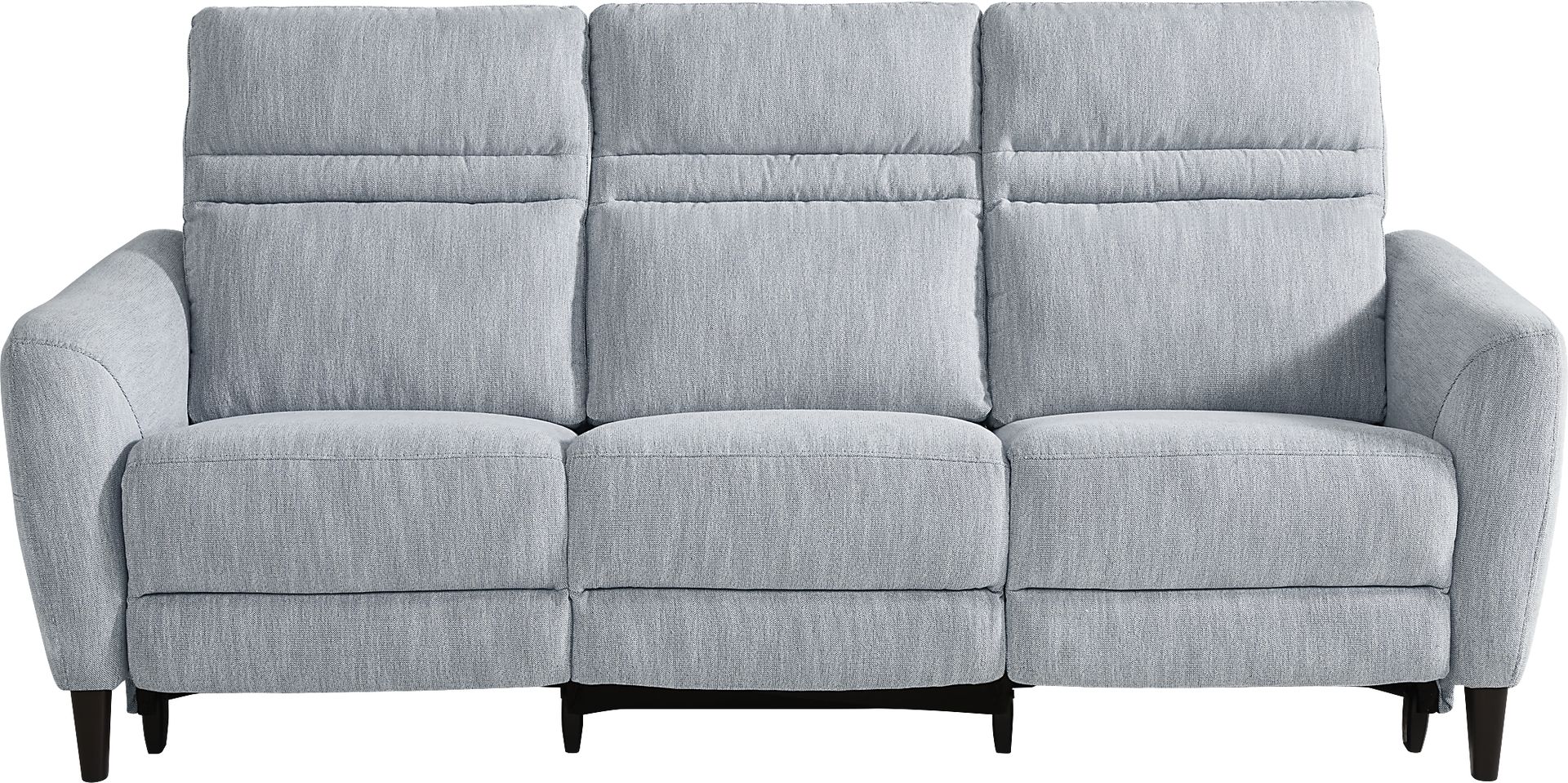 Presenting restful amenities and contemporary design, the Corby Lane dual power reclining sofa offers prime leisure and style. With features like adjustable headrests and footrests, this piece grants customized comfort at the touch of a button. Textured woven fabric tops this piece while USB ports provide power within reach. Stylish flare arms, tapered legs and the ocean blue hue tie the look in, as decorative stitching add eye-catching appeal. 100% Polyester. Dry cleaning solution only.