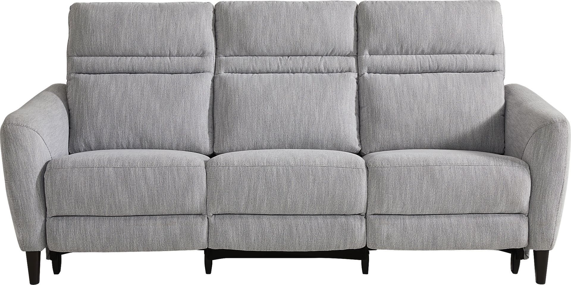 Presenting restful amenities and contemporary design, the Corby Lane dual power reclining sofa offers prime leisure and style. With features like adjustable headrests and footrests, this piece grants customized comfort at the touch of a button. Textured woven fabric tops this piece while USB ports provide power within reach. Stylish flare arms, tapered legs and the platinum gray hue tie the look in, as decorative stitching add eye-catching appeal. 100% Polyester. Dry cleaning solution only.