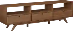 Got a minimalist motif in mind Look no further than this Corcoran TV stand with its simple yet stunning silhouette and smart storage. Three open cubbies lend just enough space for gaming consoles and streaming devices, and provide open storage for pesky cords and decor. Additional storage is readily available at the drop of a door with the three faux drawer fronts that hinge down to reveal closed space where your clutter or movie must-haves can find a home. Whether you equip this piece with your 80-inch flat-screen TV, home decor, or home office essentials, its trendy yet timeless frame is exactly what your space has been missing. Customer assembly is required.
