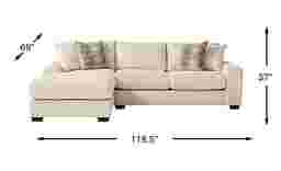Put the day aside, let worries fade and ease back into luxe relaxation as the Cordelle sectional from Drew & Jonathan Home becomes your haven of soft texture, calming color and soothing comfort. Cozy corduroy in cream beige graces every curve, accentuating the plush seats and wide track arms with casual contemporary style. Deep seats encourage lingering conversations and the occasional afternoon nap, while reversible cushions make it simple to keep the look fresh and inviting. The extra-wide chaise is designed for downtime, delivering lots of extra legroom. Coordinating pillows complete the look with a generous touch of adjustable comfort. Upholstery: 100% Polyester. Cleaning Instructions: Use water-based cleaning agents or foam.