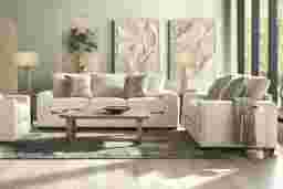 YOU SAVE $32795Includes:cream sofa • cream loveseat • Cocktail Table + 2 End Tables • beige table lamp (2)