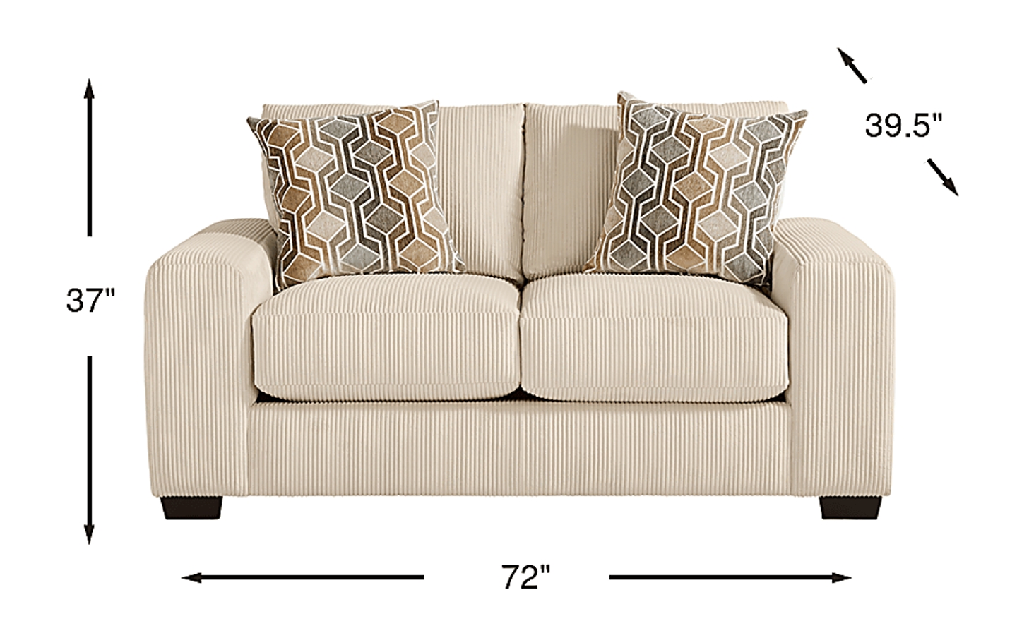 Put the day aside, let worries fade and ease back into luxe relaxation as the Cordelle loveseat from Drew & Jonathan Home becomes your haven of soft texture, calming color and soothing comfort. Cozy corduroy in cream beige graces every curve, accentuating the plush seats and wide track arms with casual contemporary style. Deep seats encourage lingering conversations and the occasional afternoon nap, while reversible cushions make it simple to keep the look fresh and inviting. Coordinating pillows complete the look with a generous touch of adjustable comfort. Upholstery: 100% polyester.