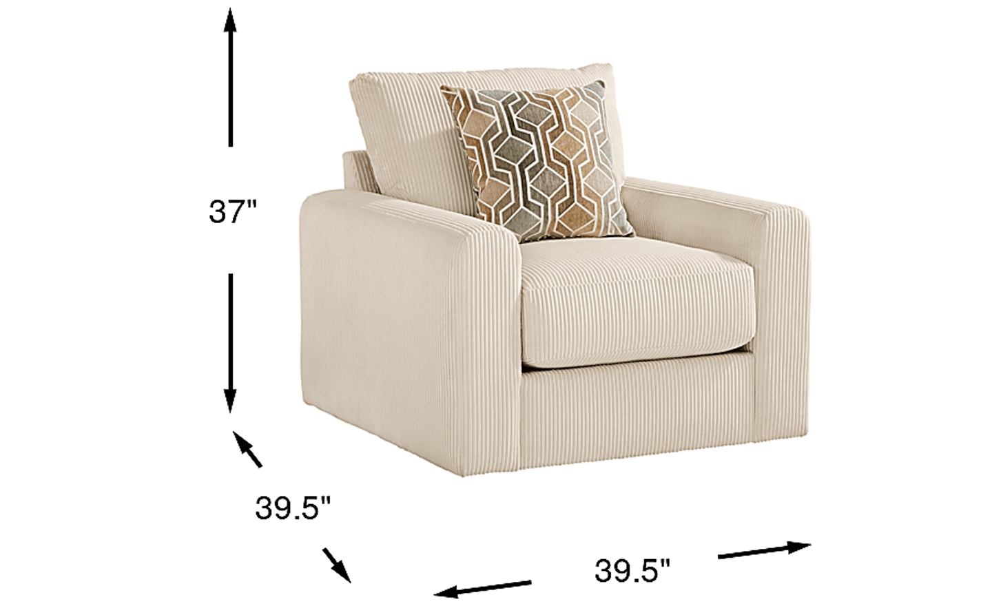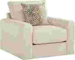 Put the day aside, let worries fade and ease back into luxe relaxation as the Cordelle swivel chair from Drew & Jonathan Home becomes your haven of soft texture, calming color and soothing comfort. Cozy corduroy in cream beige graces every curve, accentuating the plush seat and wide track arms with casual contemporary style. The deep seat encourages lingering conversations and cozy relaxation, while reversible cushions make it simple to keep the look fresh and inviting. A swivel base adds soothing motion to the sitting experience. A coordinating pillow completes this look with a generous touch of adjustable comfort. Upholstery: 100% polyester.