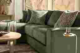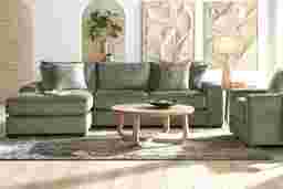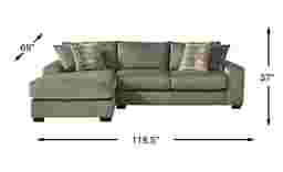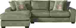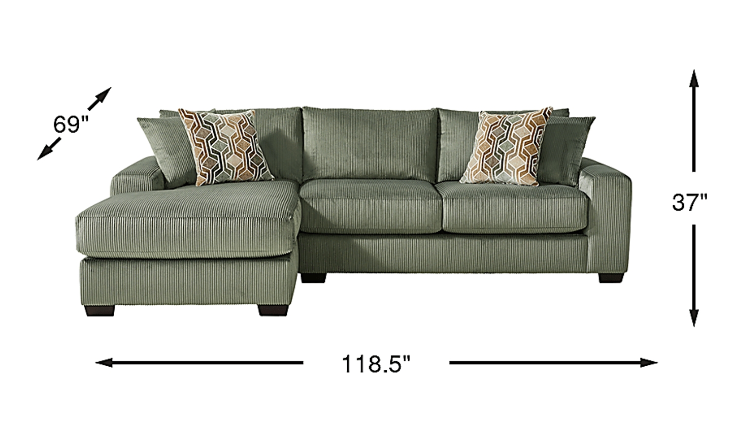 Put the day aside, let worries fade and ease back into luxe relaxation as the Cordelle sectional from Drew & Jonathan Home becomes your haven of soft texture, calming color and soothing comfort. Cozy corduroy in sage green graces every curve, accentuating the plush seats and wide track arms with casual contemporary style. Deep seats encourage lingering conversations and the occasional afternoon nap, while reversible cushions make it simple to keep the look fresh and inviting. The extra-wide chaise is designed for downtime, delivering lots of extra legroom. Coordinating pillows complete the look with a generous touch of adjustable comfort. Upholstery: 100% Polyester. Cleaning Instructions: Use water-based cleaning agents or foam.
