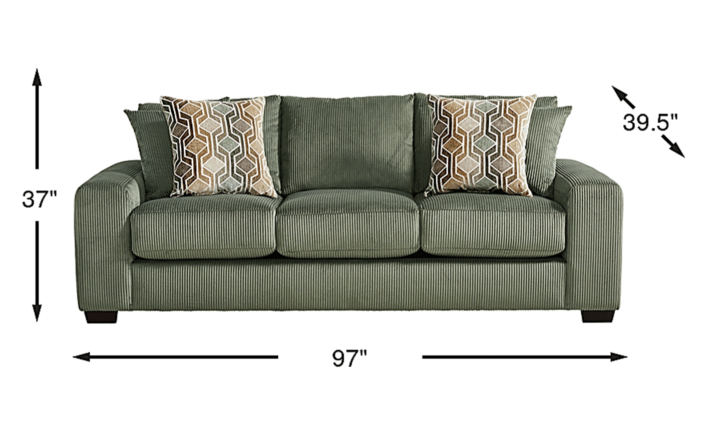 Put the day aside, let worries fade and ease back into luxe relaxation as the Cordelle sleeper sofa from Drew & Jonathan Home becomes your haven of soft texture, calming color and soothing comfort. Cozy corduroy in sage green graces every curve, accentuating the plush seats and wide track arms with casual contemporary style. Deep seats encourage lingering conversations and the occasional afternoon nap, while reversible cushions make it simple to keep the look fresh and inviting. Coordinating pillows add the perfect touch of adjustable comfort. Nestled away for overnight guests, a Nature's Bed gel foam mattress pulls out to provide a cool and comfortable place for rest. Upholstery: 100% Polyester. Cleaning Instructions: Use water-based cleaning agents or foam.