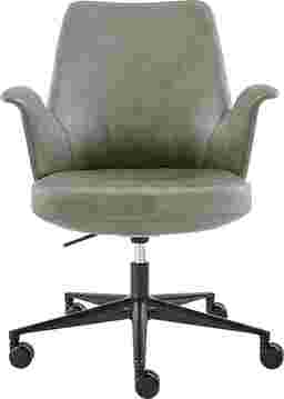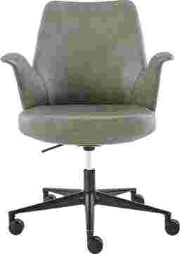 With its stunning flared arms as a key design element, the Coreking gray office chair exudes beauty and style. The distressed leatherette material is built to ensure durability and longevity. This chair combines functionality and stability. Customer assembly is required.
