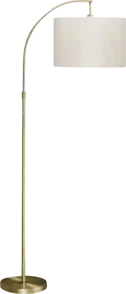 Brighten up your space with the Corerover Gold Floor Lamp in brass metal topped with a chic ivory drum shade. This contemporary lamp is the perfect functional and decorative lighting piece to brighten a living room, bedroom, or office. The elegant arched arm that holds fabric shade softens the light to illuminate a corner helping to create the right ambiance as well as an eye-catching accent in any room. Partial assembly may be required.