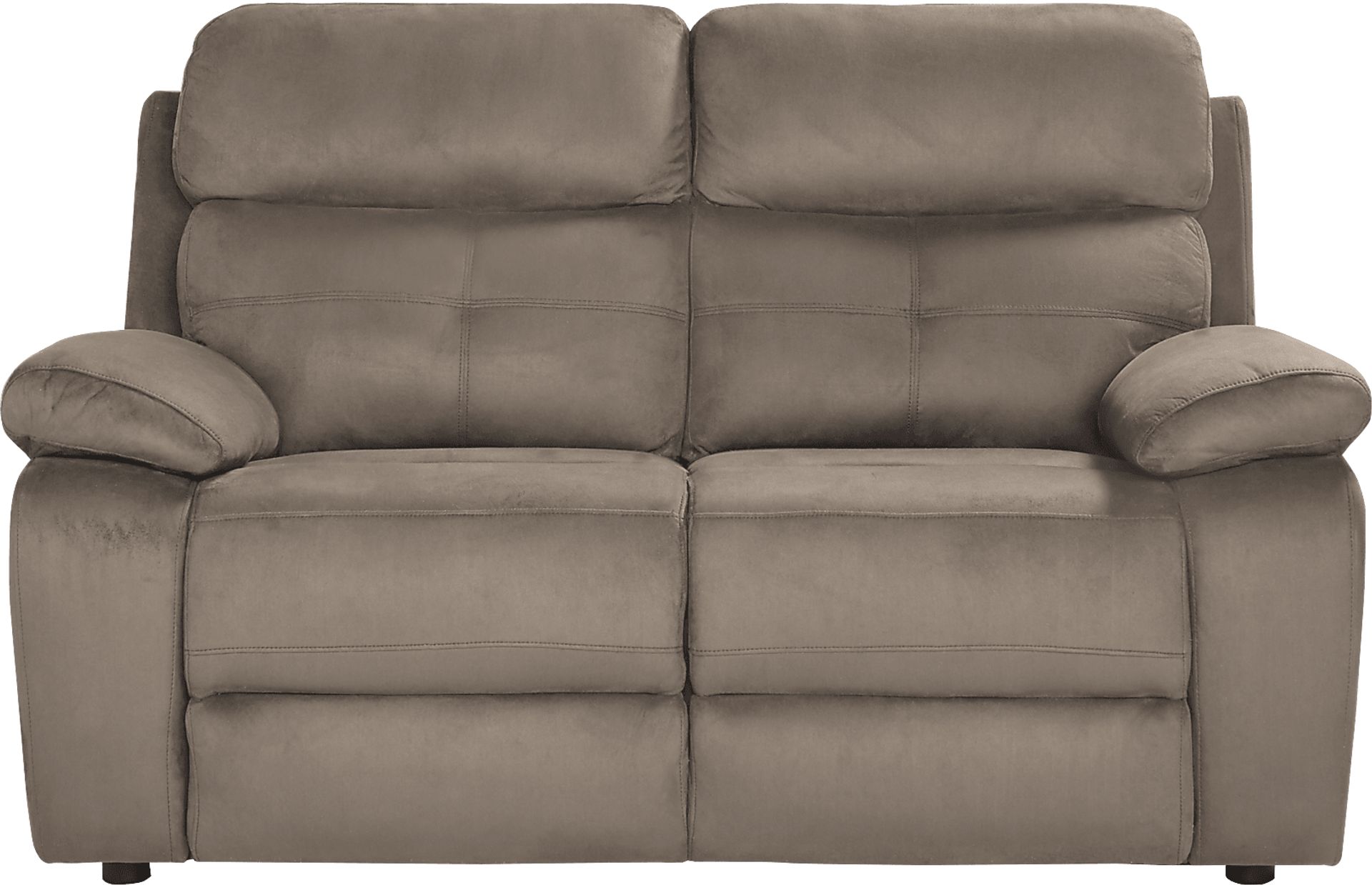 Sit back, relax, and enjoy the comfortable seating experience of the Corinne loveseat. Padded backs and seats and pillowtop arms cradle and support you. Upholstered in soft stone gray MicroFiber, this loveseat for two is a plush and contemporary addition to your home. 100% Polyester MicroFiber