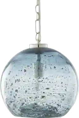 At 11 inches in diameter, this pendant is perfectly scaled for layering. For a standard kitchen island, our design experts recommend spacing two or three of these fixtures approximately 30 inches apart to ensure even light distribution. If hanging above a dining table, we suggest positioning the bottom of the globe roughly 30 to 36 inches above the surface to maintain clear sightlines while maximizing the aesthetic impact of the blue glass.