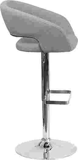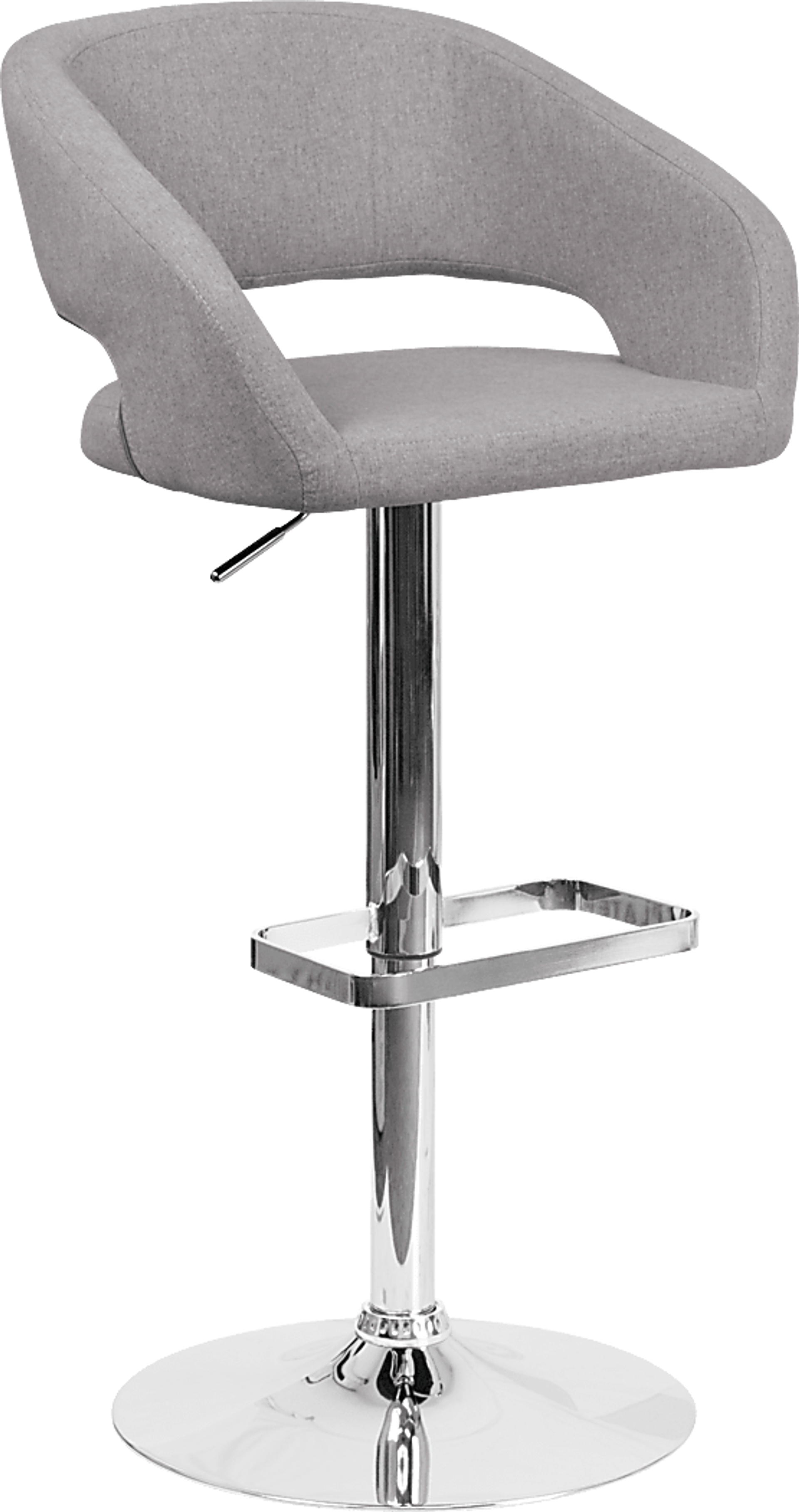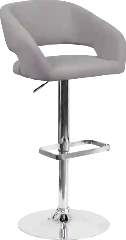 The modern Corley gray adjustable swivel barstool is upholstered in a durable upholstery and adjusts from counter height to bar height. The rounded back features a decorative zipper trim design. The height adjustable swivel seat adjusts from counter to bar height with the handle located below the seat. The chrome footrest supports your feet while also providing a contemporary chic design. To help protect your floors the base features an embedded plastic ring. Customer assembly is required.