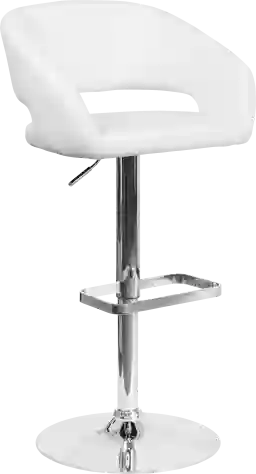 The modern Corley white adjustable swivel barstool is upholstered in a durable upholstery and adjusts from counter height to bar height. The rounded back features a decorative zipper trim design. The height adjustable swivel seat adjusts from counter to bar height with the handle located below the seat. The chrome footrest supports your feet while also providing a contemporary chic design. To help protect your floors the base features an embedded plastic ring. Assembly required.