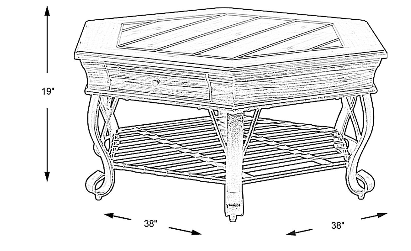 The Coronado Bay cocktail table adds visual appeal to your living area, thanks to a distinctive hexagon shape and warm, cozy vibe. The classic brown cherry tabletop is supported by a beautifully curved iron base, adding to the cozy feel. A small drawer on the side and a lower shelf both offer additional storage space. Customer assembly required.