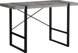 This stylish industrial-inspired Corryville computer desk could easily pass for an accent table. It features a spacious, thick-panel desktop finished in a grey concrete-look laminate and sturdy metal legs in a contrasting black finish. The metallic components are put on full display with rectangular legs integrated into the desktop and an exposed support bar in an attractive X shape on the back of the desk. If you use a living room or bedroom as a home office and are looking for a streamlined alternative to traditional desks, this laptop or writing table gets the job done. Customer assembly is required.