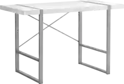 This stylish industrial-inspired Corryville computer desk could easily pass for an accent table. It features a spacious, thick-panel desktop finished in a smooth white laminate and sturdy metal legs in a contrasting silver finish. The metallic components are put on full display with rectangular legs integrated into the desktop and an exposed support bar in an attractive X shape on the back of the desk. If you use a living room or bedroom as a home office and are looking for a streamlined alternative to traditional desks, this laptop or writing table gets the job done. Customer assembly is required.