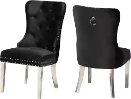 Saturate your space with the opulent charisma radiating from the remarkable Corsten black side chair, set of 2. This beautiful piece consists of a wood frame padded with foam and upholstered in sumptuous velvet fabric. The curves of the backrest are accentuated by a stunning nail head trim while a lovely button-tufted design expresses the luxurious nature of the piece. The Corsten features tapered legs for excellent stability and support. Bringing a sense of indulgence to every occasion, the Corsten is sure to leave an impression. Customer assembly is required.