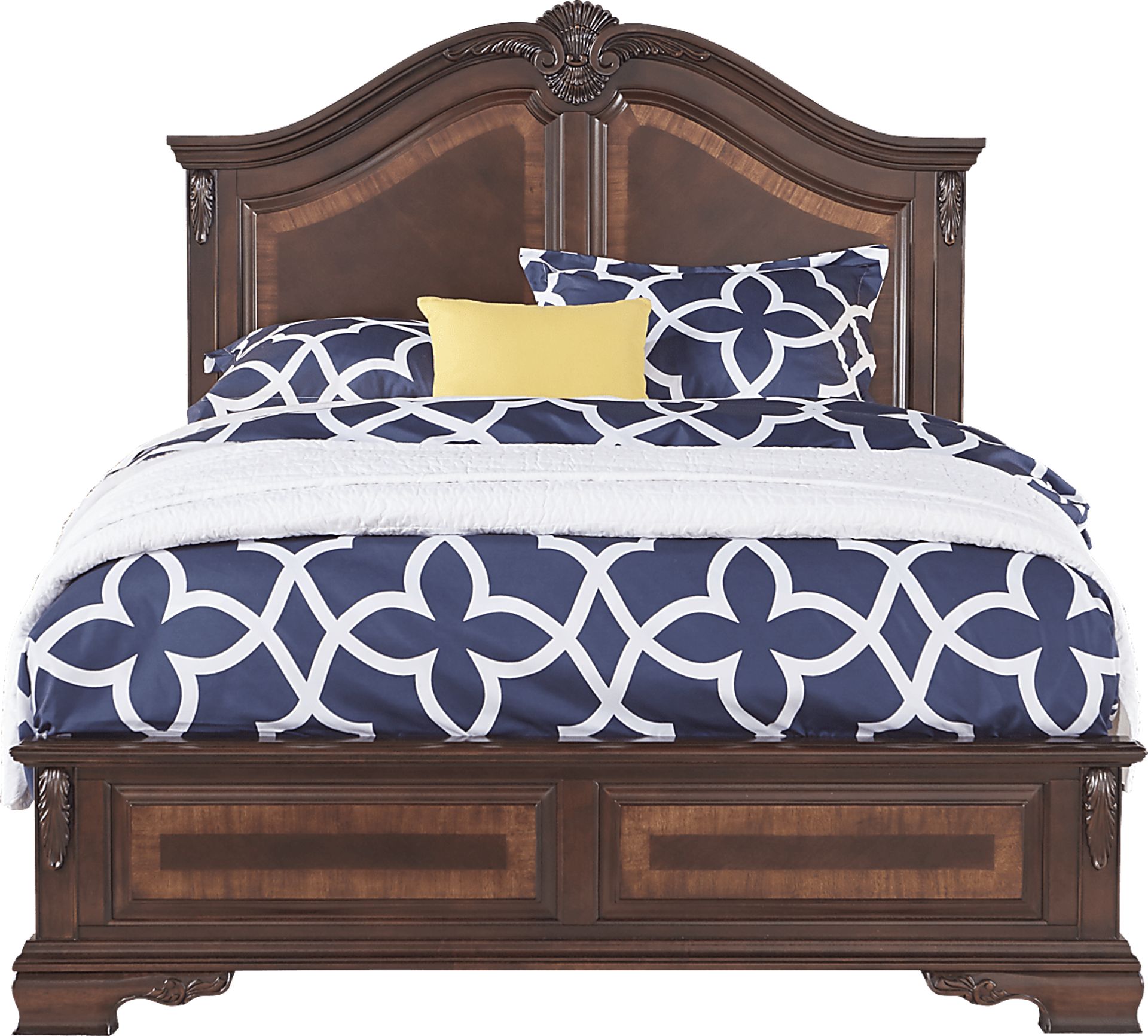 Inspired by antiques from a bygone era, the beautifully appointed Cortinella bed is ideal for those who appreciate traditional styling. The panel bed, made with cherry veneers and primavera borders, features a tall, arched headboard with elegant carving effects. Additional refinements include raised panels and a low footboard with decorative feet. Mattress and foundation (if required) sold separately. Bed shown queen size.