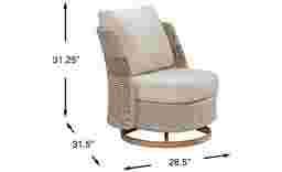 The clink of glasses, the sound of laughter, and the enchanting melody of intimate gatherings come to life with the Costa Mesa collection, wrapping each moment in the warmth of great style & great company. Rendered in a weather-resistant aluminum frame, this chair's swooping barrel seat design is covered in woven outdoor rope dyed a colorfast and UV-resistant beige. The seat back is accented with a wide brown stripe, a perfect contrast against the light neutral pillow-style cushion. Upon taking their seat, guests will love the soothing swivel and rocking motions provided by the aluminum base and the charming hand-brushed woodgrain pattern it displays.