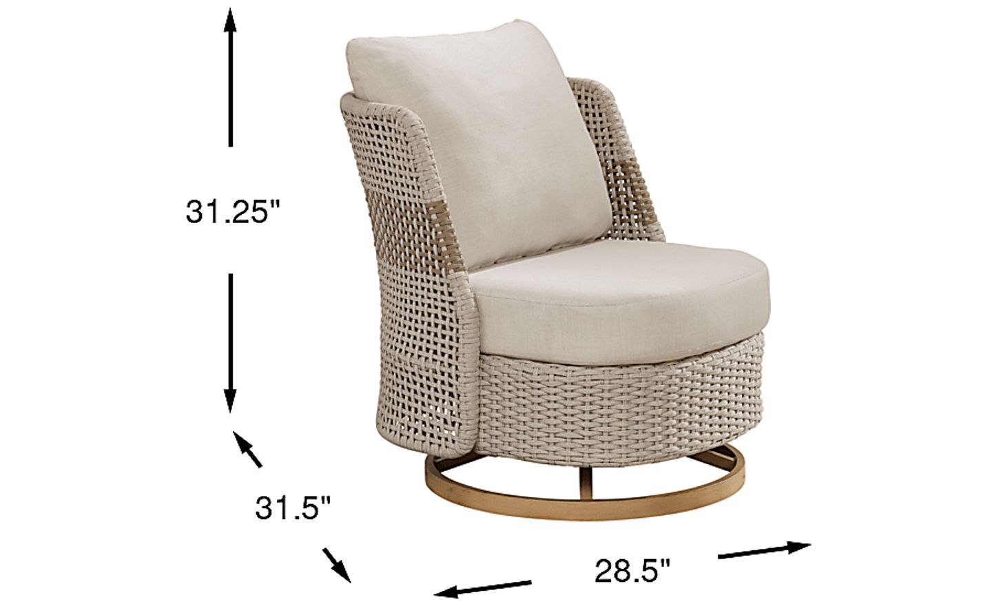 With a width of 28.5 inches and a depth of 31.5 inches, this chair is designed for a cozy footprint. However, to ensure a full 360-degree rotation and a smooth rocking motion without obstruction, we recommend placing it with at least 18 to 24 inches of clearance from walls, railings, or other furniture.