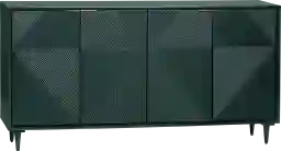 Infuse your space with elegance with the Costelloy green sideboard. The smooth evergreen painted finish, paired with geometric fluted detailing on the doors, exudes a refined charm. Antique brass finger ledge pulls and upgraded European hinges add a touch of sophistication. Inside, two shelves offer practical storage, while two cord management holes keep cables organized. Tapered legs and adjustable levelers ensure stability. Easy to assemble, just add the legs, and enjoy a seamless blend of style and functionality. Customer assembly is required.