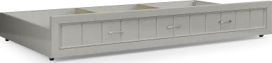The Cottage Colors twin over twin loft bed has space saving savvy you'll love. From the charming paneling detail to the built in dresser, this sturdy loft bed is pretty yet practical. Multiple steps with valuable built-in storage drawers lead to the top bunk. For safety, each step has a textured strip for slip resistance. Crafted of poplar solids, the cool gray finish is fun and contemporary. Mattresses and foundations (if required) sold separately. Bunkies required for mattress support. Bottom bed shown is full size.