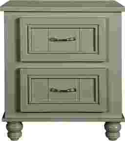 The Cottage Colors nightstand is ideal for keeping a lamp, clock and other bedside necessities close by. Made of poplar solids with a green finish, its two roomy drawers feature beautiful paneling and brushed nickel finished hardware. Bun feet add a stylish finishing touch.