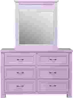 Offering six roomy drawers of storage, the Cottage Colors dresser is quality constructed of poplar solids with a lilac finish. Each drawer has paneling detail and brushed nickel finished hardware. Drawer pulls are rounded and edges are curved for added safety. The matching mirror is designed to affix to the dresser.